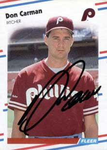 Mr. Howell pitched for the Phillies in 1989-1990, after being traded from the Baltimore Orioles in the 1988 offseason (where he was officially on the team for just four days), in exchange for Phil Bradley. Interesting to note is that he came off of a shoulder injury and then pitched to a record of 30-29 for the beleagured squad Phils' squad over two years. During his seven year career, he went 38-48 with a 3.95 ERA, with 549 K's in 613.3 innings. It may be worth noting that the only major statistical category that he ever lead the league in for a season was for hurling 21 wild pitches in 1989.